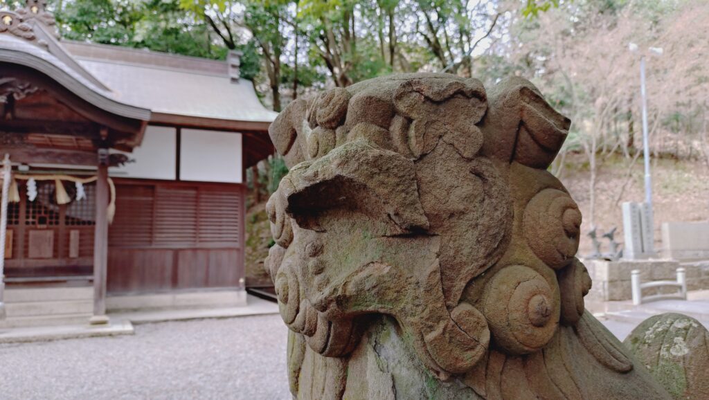 特徴と言うべきか、はたまた。ではありますが、阿吽の狛犬が両方とも顔が削れており、何とも言えない表情になっています。