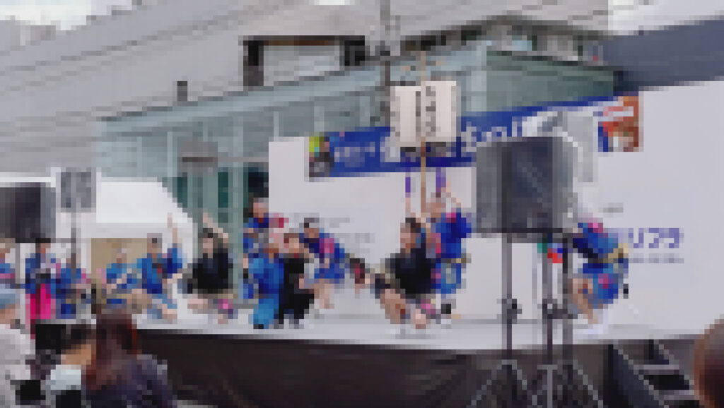 画像は10時に始まった『備前阿波おどり烏城連』の演武。